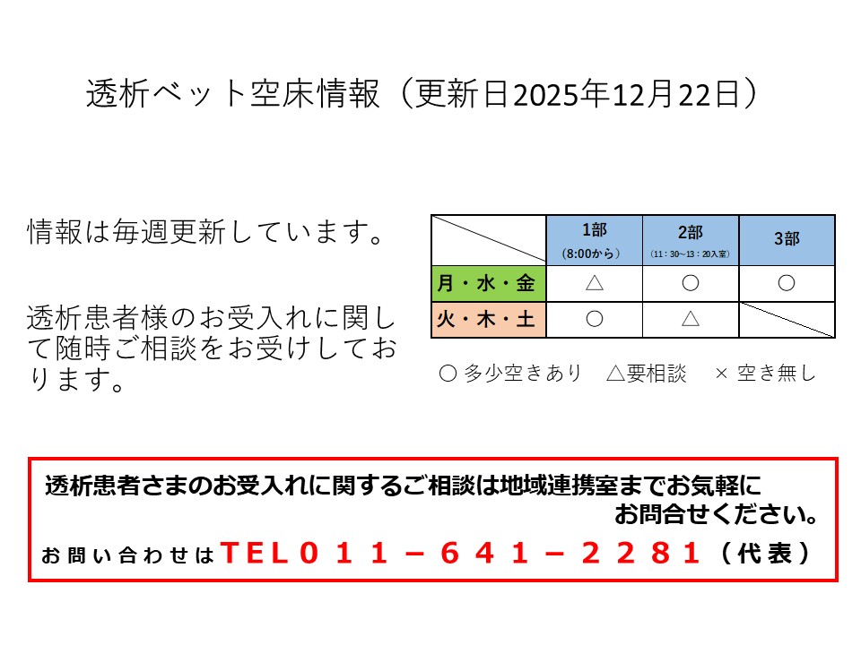 ※透析ベット空床情報(12月22日最新)※