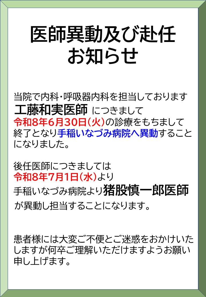 医師異動と赴任のお知らせ
