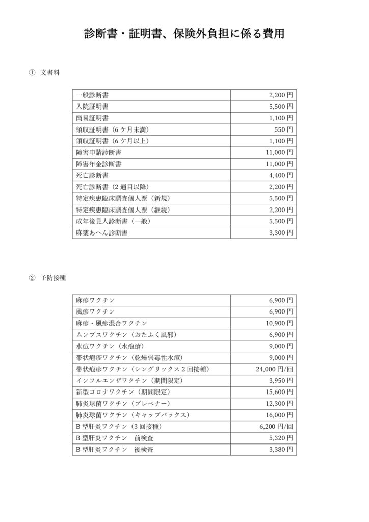 診断書・証明書、予防接種、保険外負担に係る費用について