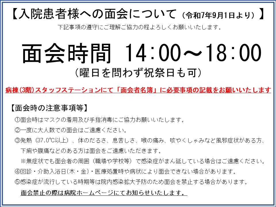 (更新)入院患者様への面会について(令和7年9月1日から)※予約が不要になります